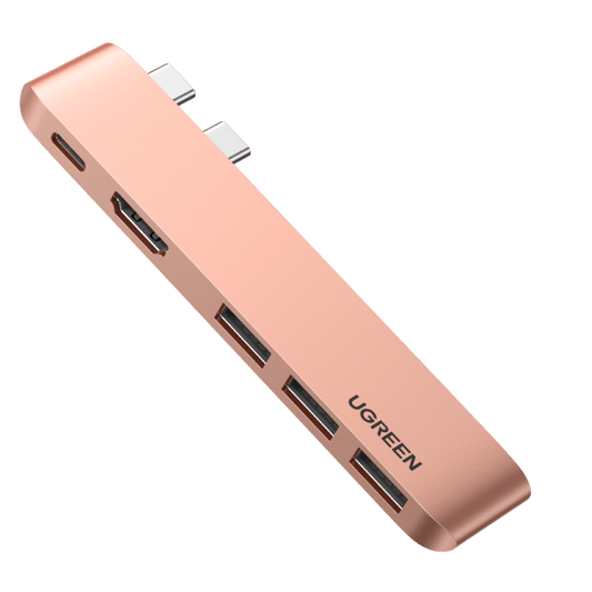 Ugreen 60559 Dual USB-C To HDMI+3*USB 3.0 A+Type C Female Converter Gray