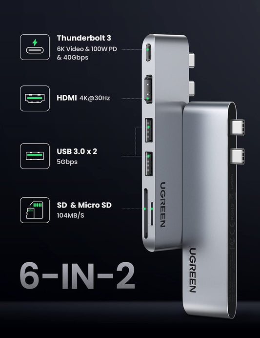 Ugreen 80856 Dual USB-C To HDMI+2*USB 3.0 A+TF/SDUSB-C Female Converter Gray