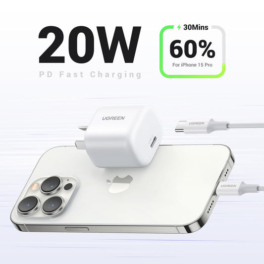 UGREEN 40394 Mini 20W USB C Charger AU Plug, PD Fast Charger Block Type C Power Adapter for iPhone 16 Pro Max/16 Plus/15 Pro Max/14/13/12/11, Galaxy S24 Ultra/S23, Pixel 9/8/7, iPad Mini/Pro, Airpods Pro 2