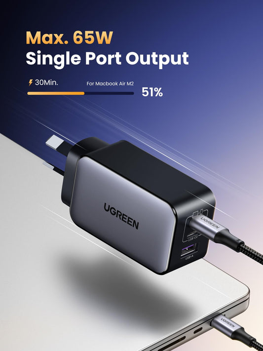 UGREEN 25113 USB C Charger 65W Nexode 3 Ports GaN II Fast Charger Block