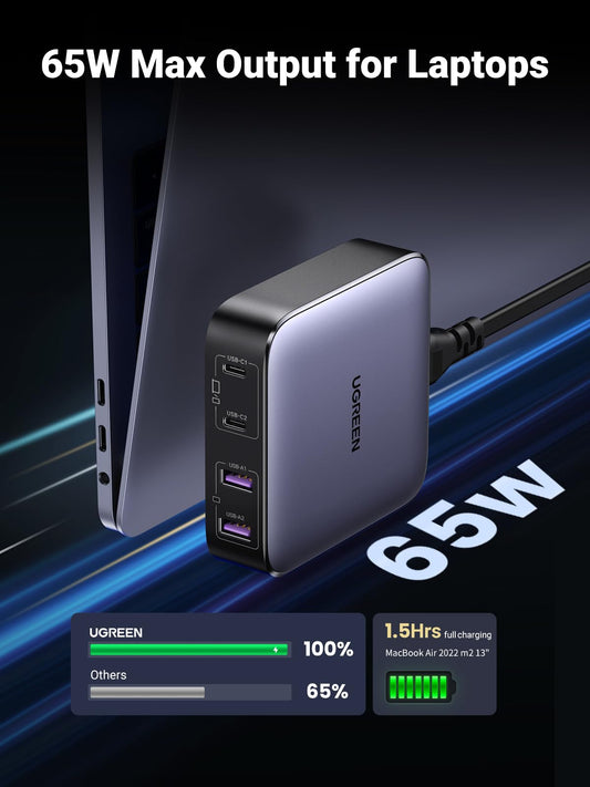 UGREEN 15611 65W USB C Charger, 4 Ports Nexode GaN II Charging Station, Fast Laptop Charger for iPhone 16 Pro Max/15 Pro/14, Galaxy S24 Ultra, Pixel 9/8, iPad Pro, MacBook Pro, Steam Deck, Laptops, Tablets
